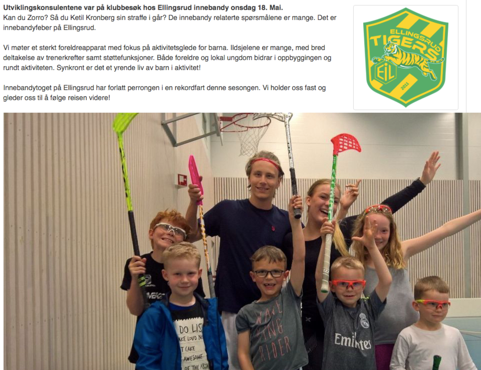 Onsdag 18.mai ønsker vi Andreas Hildremyr og Andrè Hagen fra Innebandyforbundet velkommen på besøk for å se på det yrende livet I hallen av unge nye spillere. De har tilbudt oss litt ekstra oppstartshjelp I høst med skolering av lagledere og trenere.